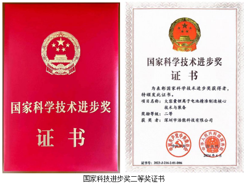 2024年6月24日,全资子公司浩能科技荣获“2023年国家科学技术进步奖二等奖”。
